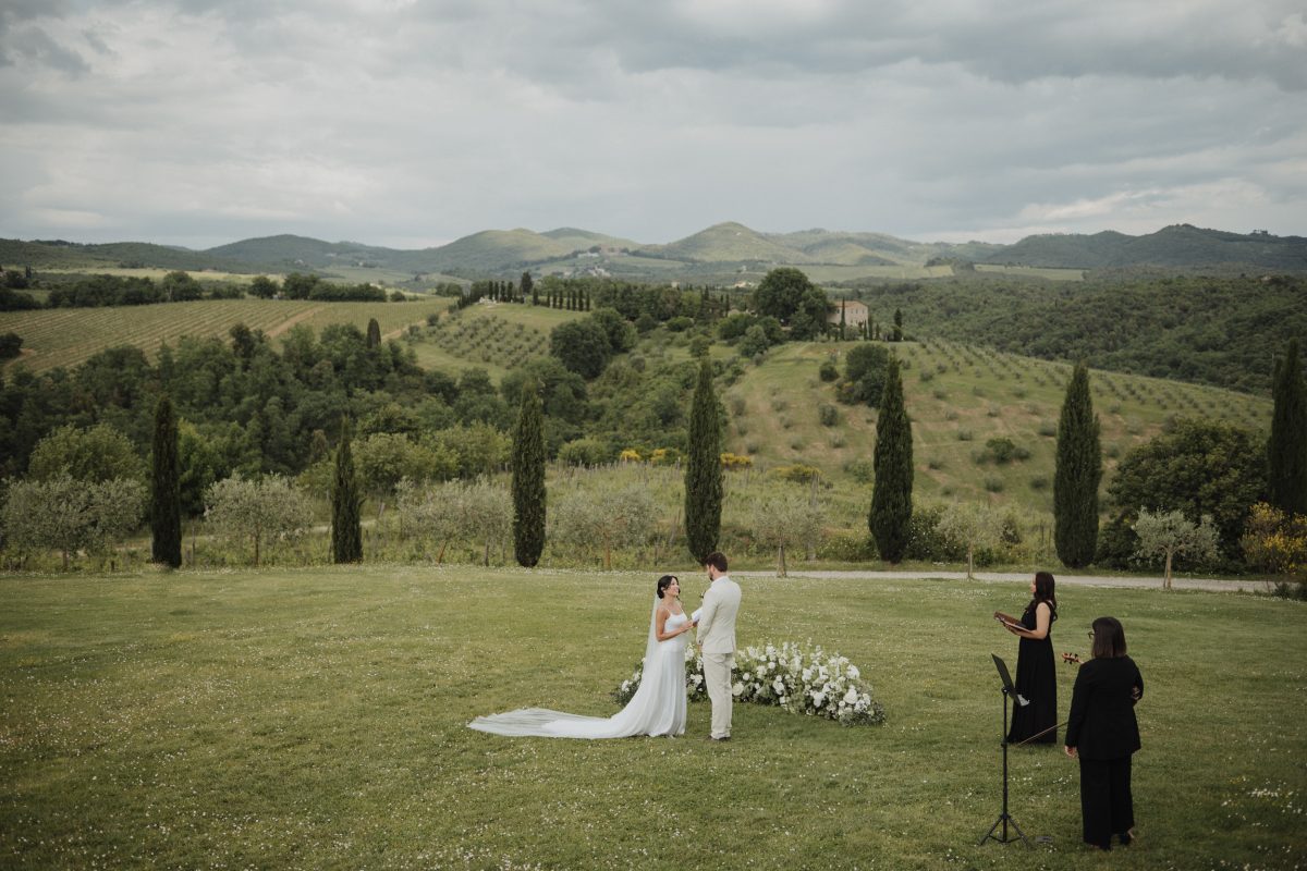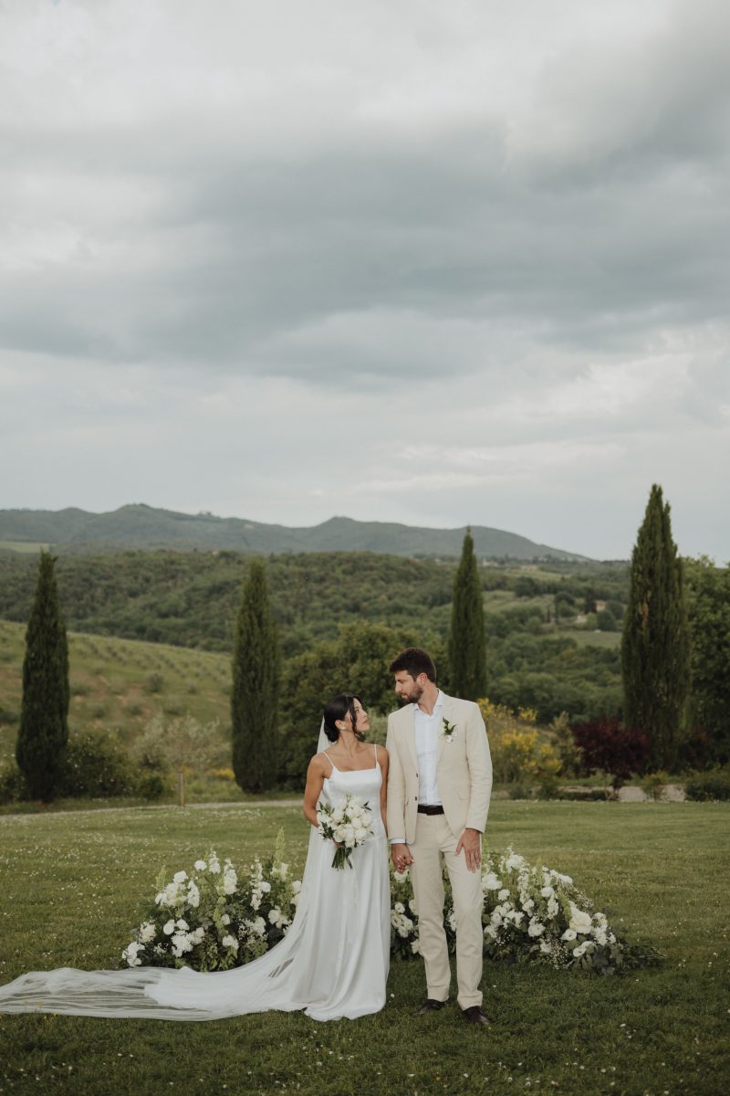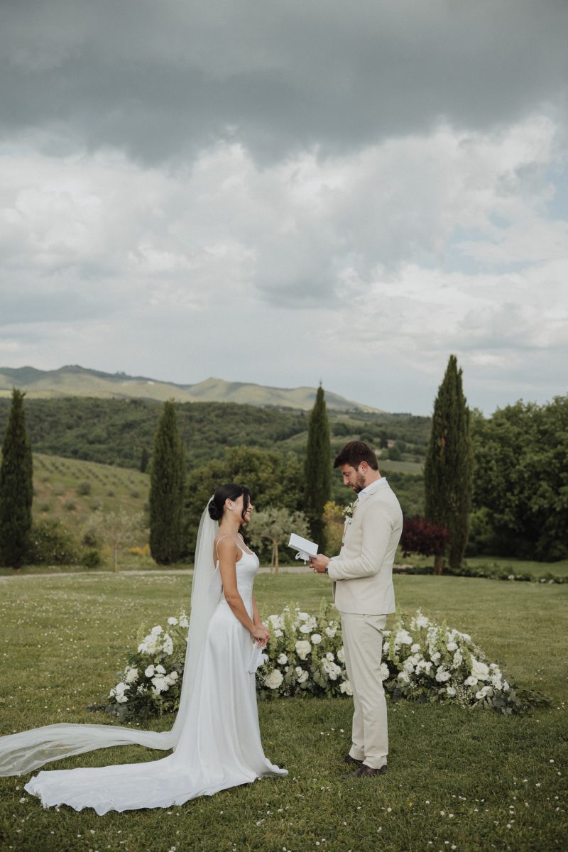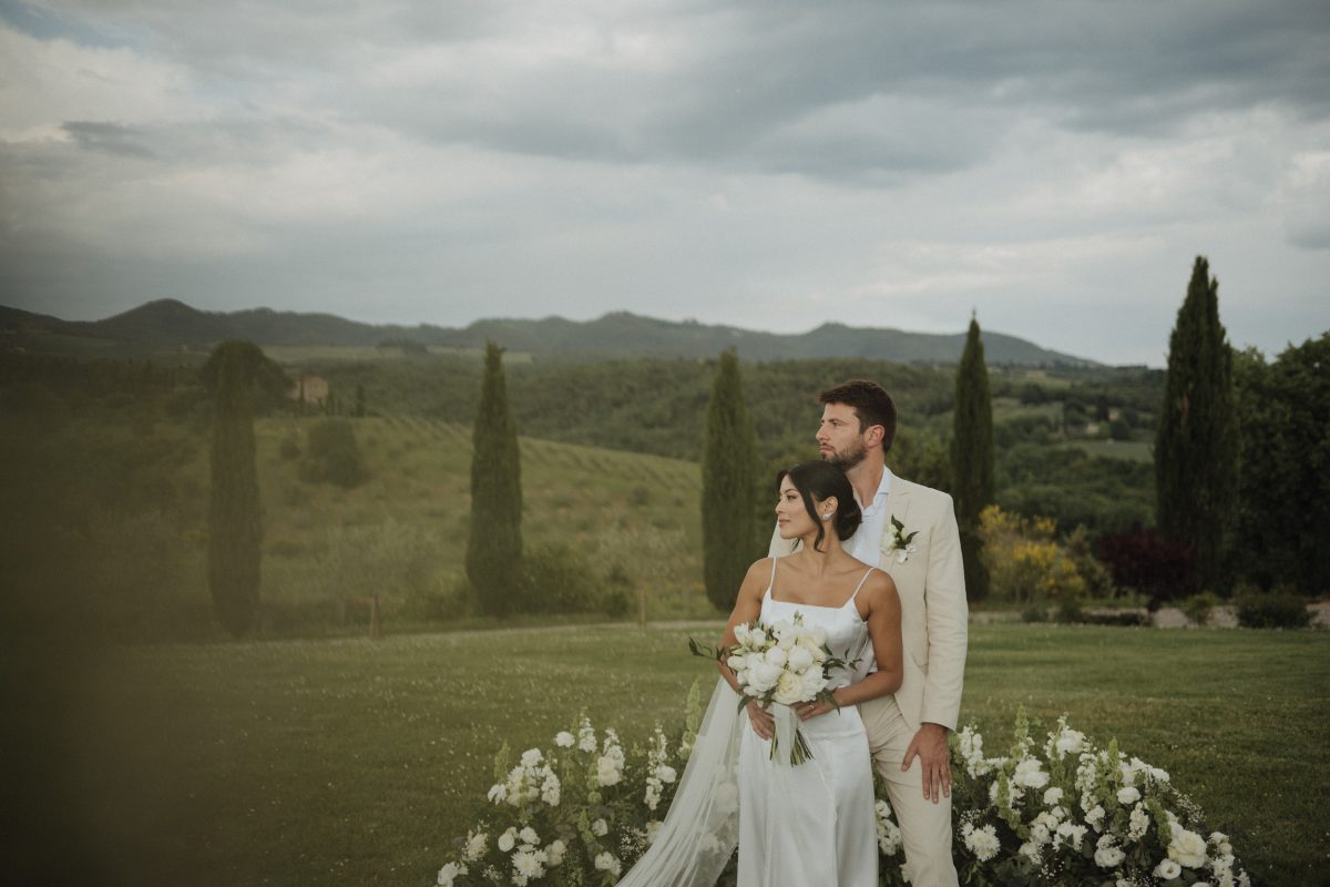 O elopement de Priscila e Marcelo foi pensado nos detalhes, mas vivido com leveza. Eles escolheram um local tranquilo, cercado pela paisagem suave da Toscana, onde o silêncio, a natureza e a luz natural criavam o cenário perfeito para uma celebração íntima.