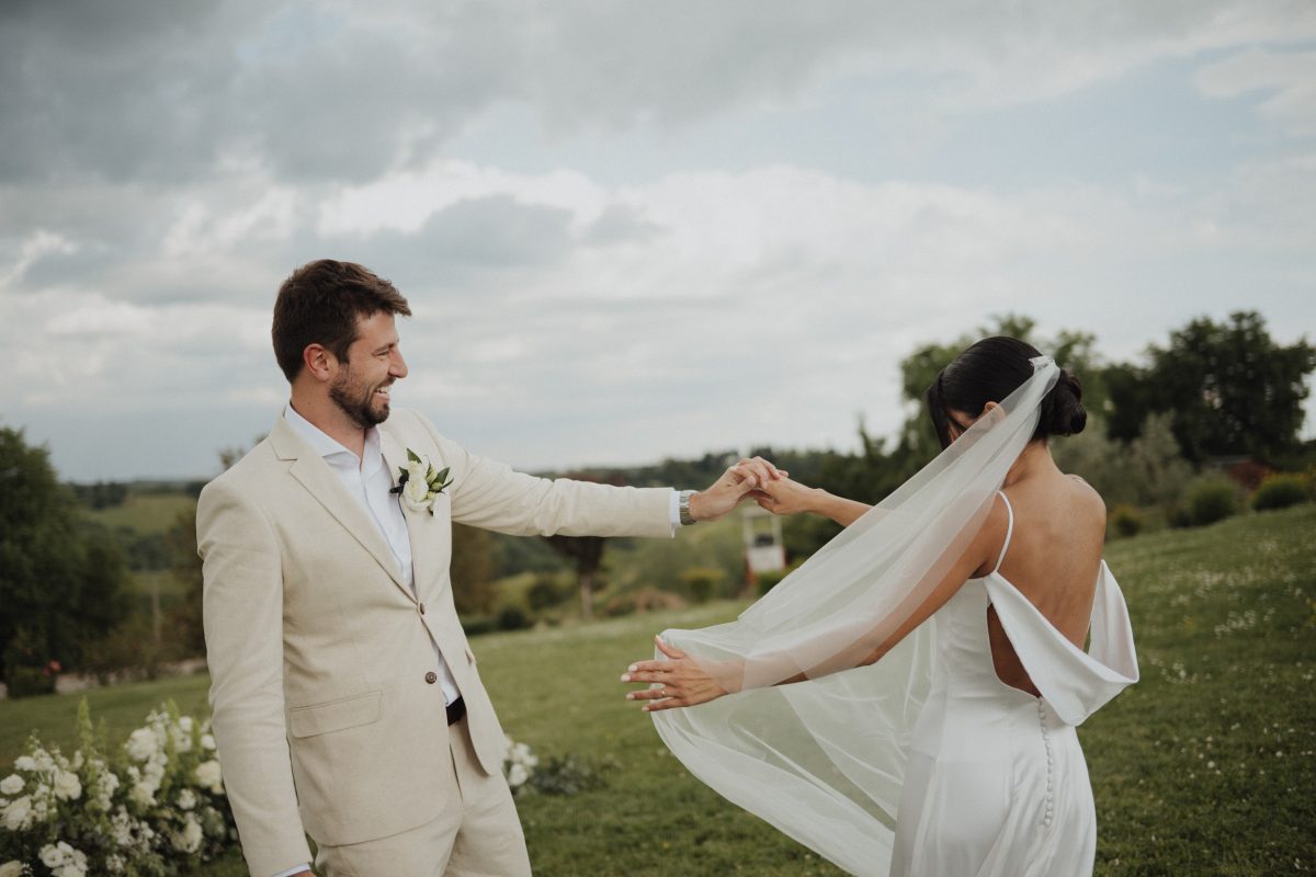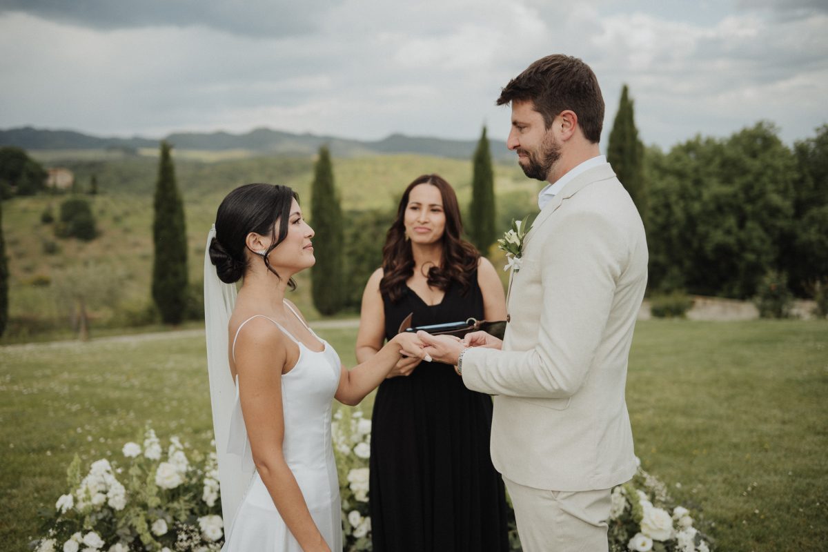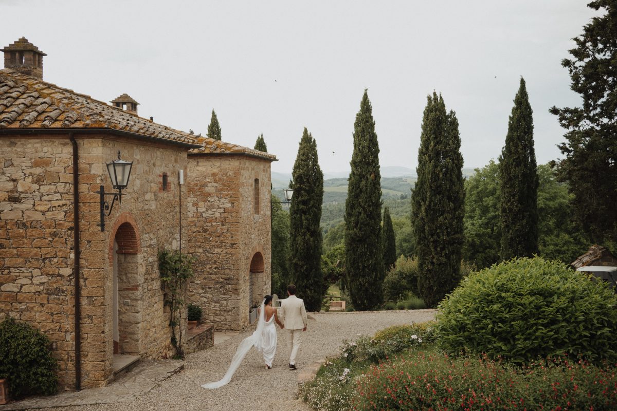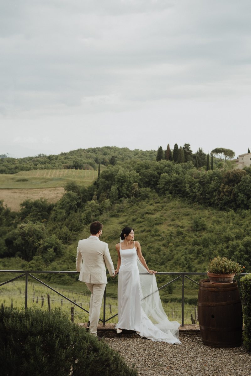 O elopement de Priscila e Marcelo foi pensado nos detalhes, mas vivido com leveza. Eles escolheram um local tranquilo, cercado pela paisagem suave da Toscana, onde o silêncio, a natureza e a luz natural criavam o cenário perfeito para uma celebração íntima.